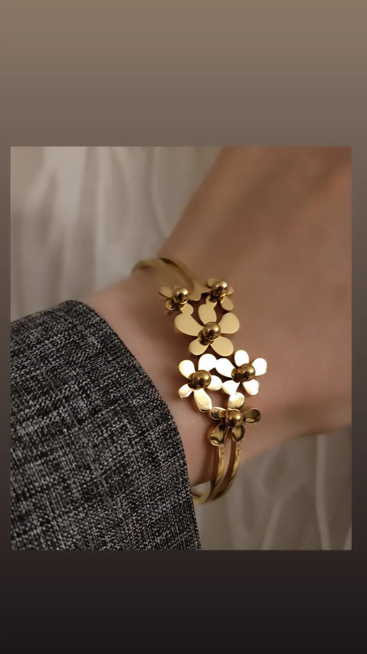 Fin et florissant, ce bracelet en acier inoxydable plaqué or 18 carats enchantera volontier votre poignet droit .